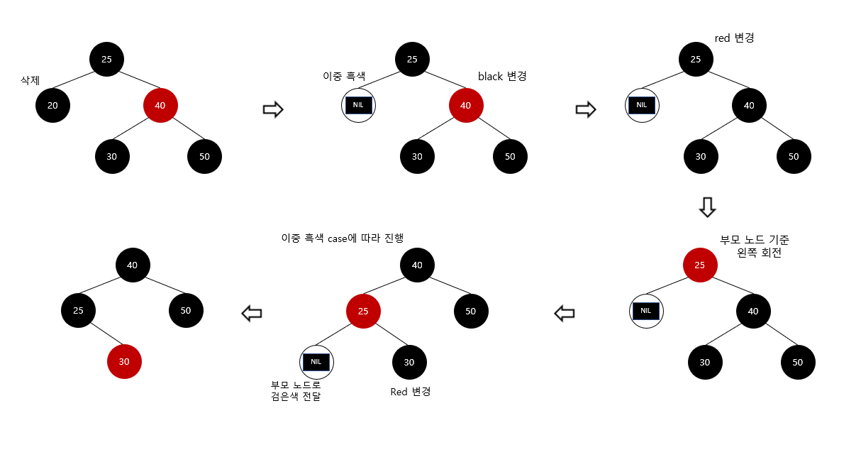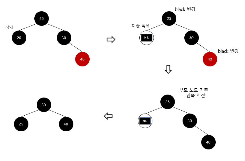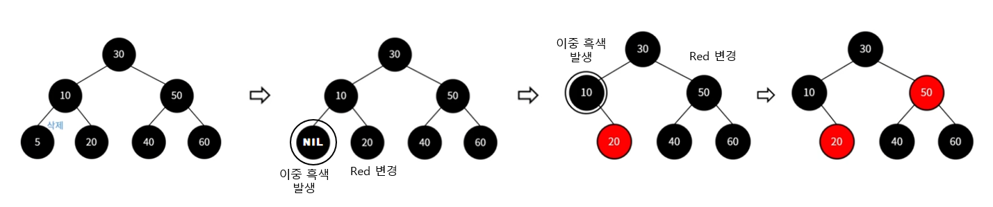 - 삭제 대상 노드가 black이고, 그 자리에 오는 노드가 black인 경우 (Double Black Case)