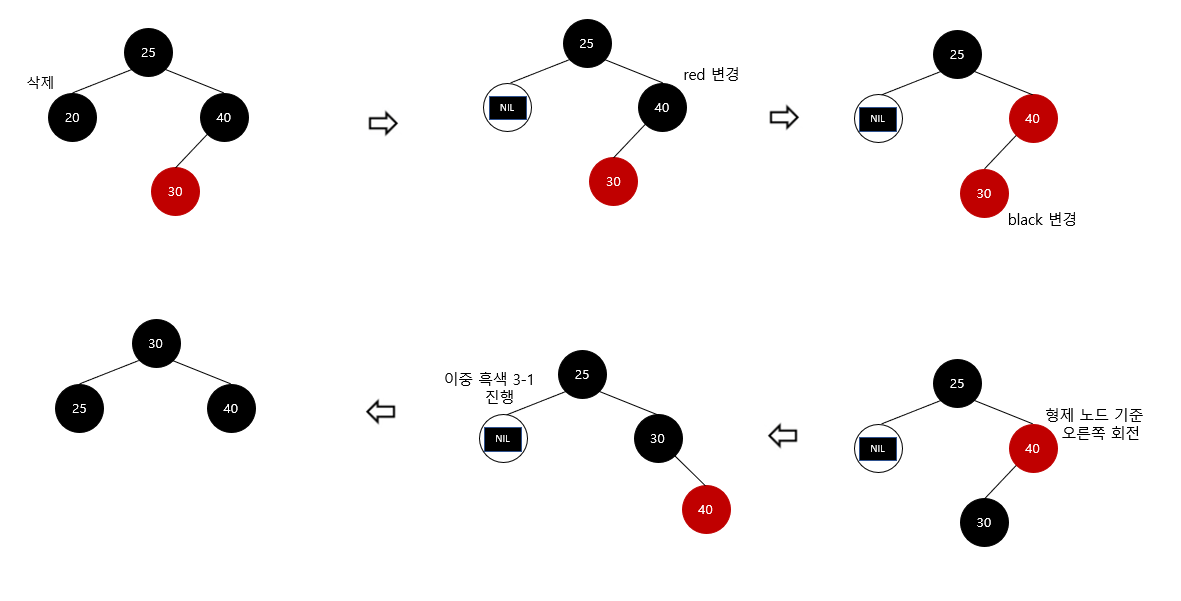 Double Black Case 2. 이중 흑색 노드의 형제 노드가 red인 경우