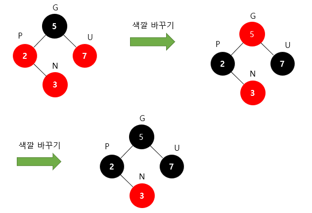 - 부모 노드의 형제(삼촌 노드)가 red인 경우