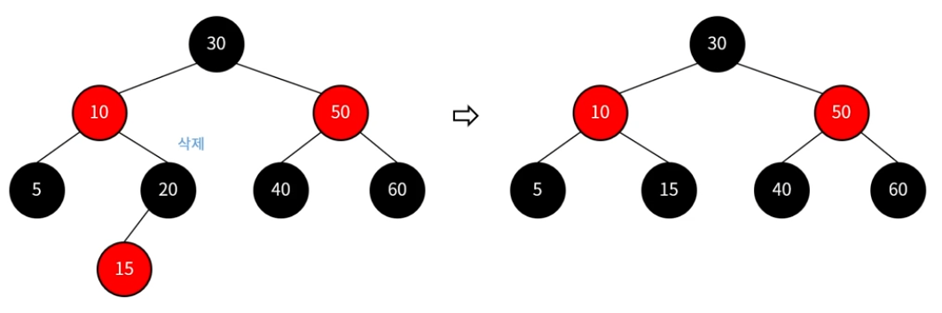 - 삭제 대상 노드가 black이고 그 자리에 오는게 red인 경우 (기본)