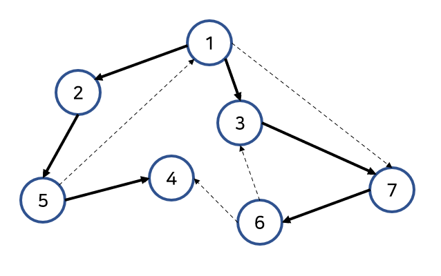 깊이 우선 탐색으로, 그래프에서 깊은 부분을 우선적으로 탐색하는 방법입니다.