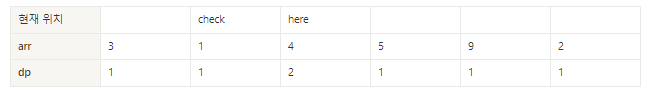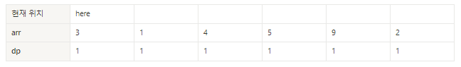 1. 수열의 각 자리들의 최장 길이를 기록할 배열을 선언한 후, 1로 초기화