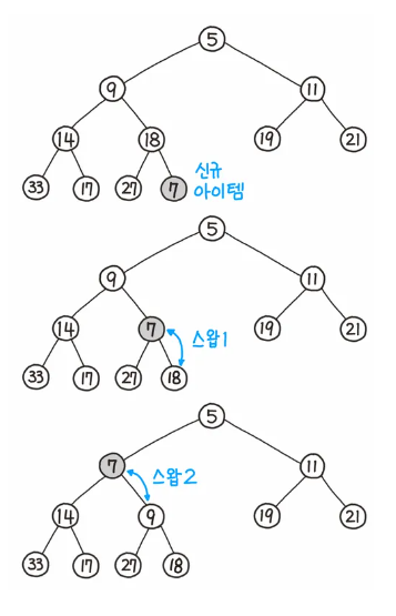 // 2. 부모 값과 비교 후, Heap 규칙에 맞지않으면 교환