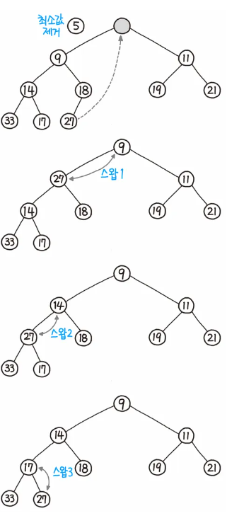 } else { // 부모 노드가 자식 노드보다 크다면 교환