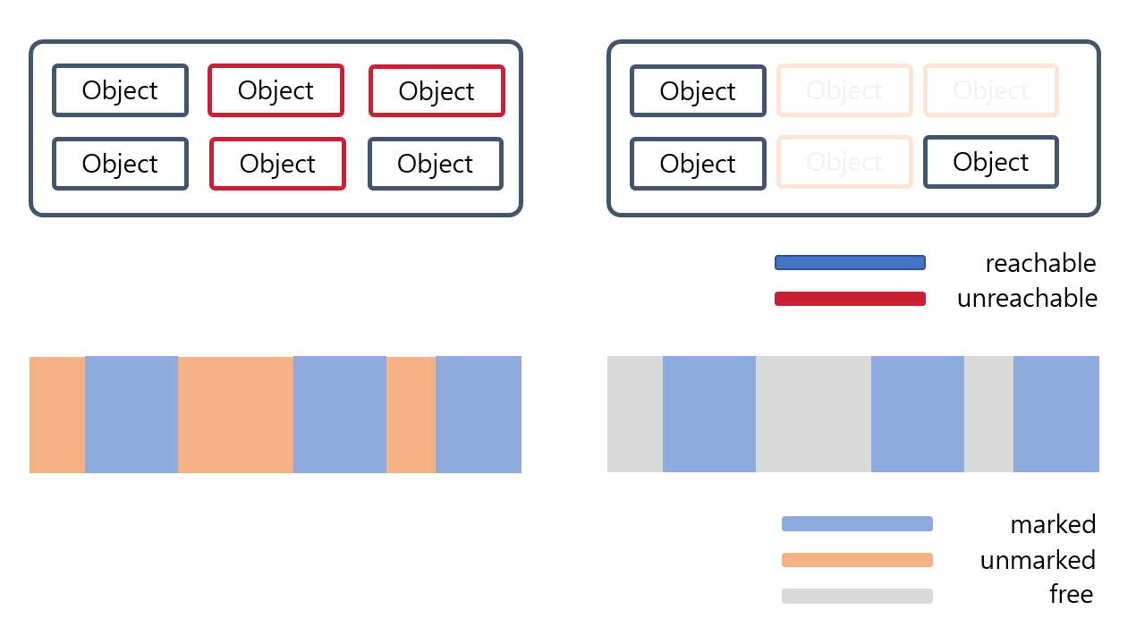 Mark & Sweep 알고리즘은 이름과 같이 두가지 과정을 거치게 됩니다.