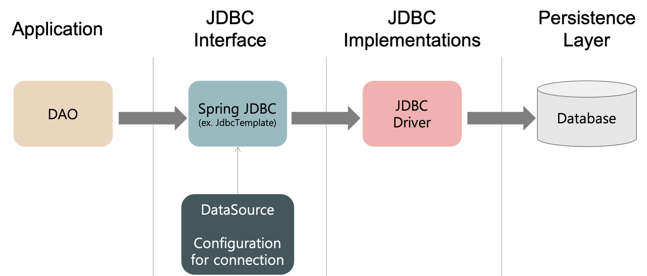 Spring JDBC는 다음과 같은 흐름을 가지고 있습니다.