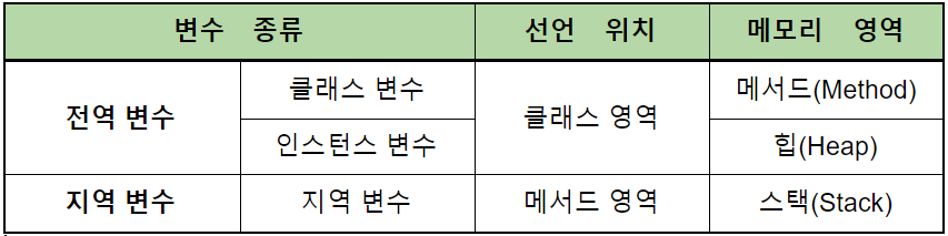 자바에서 변수는 선언 위치에 따라 사용될 수 있는 범위(Scope)가 달라지며, 크게 두 종류로 나눌 수 있습니다.