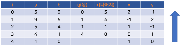 구해진 나머지와 몫을 이용하여 역순으로 다음 식을 계산합니다.