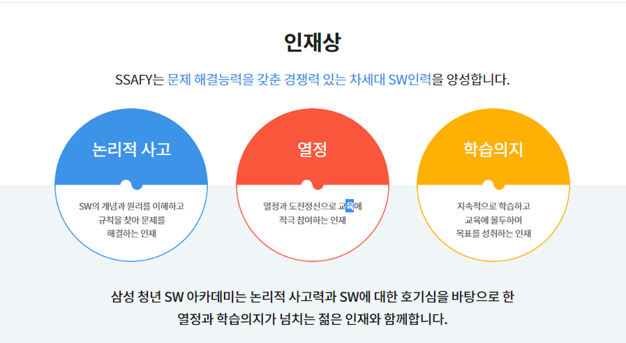 삼성 청년 SW 아카데미(SSAFY)는 삼성의 SW 교육 경험과고용 노동부의 취업지원 노하우를 바탕으로 취업 준비생에게 SW 역량 향상 교육 및 다양한 취업지원 서비스를 제공하여 취업에 성공하도록 돕는 프로그램