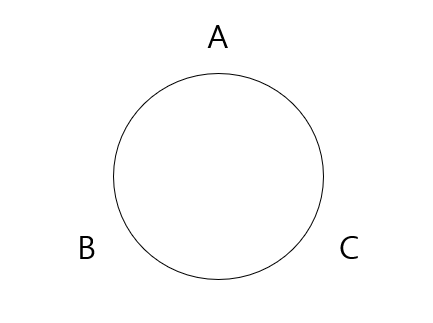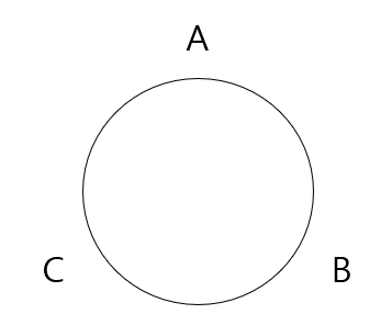 B A C , B C A 등도 되는거 아니냐라고 생각할 수 있는데, 원형으로 나열한다는 것은 첫 시작점이 존재하지 않고 순환한다고 생각해야 합니다. 즉 A B C는 B C A , C A B , A B C 이런식으로 모두 동일하게 취급이 됩니다.